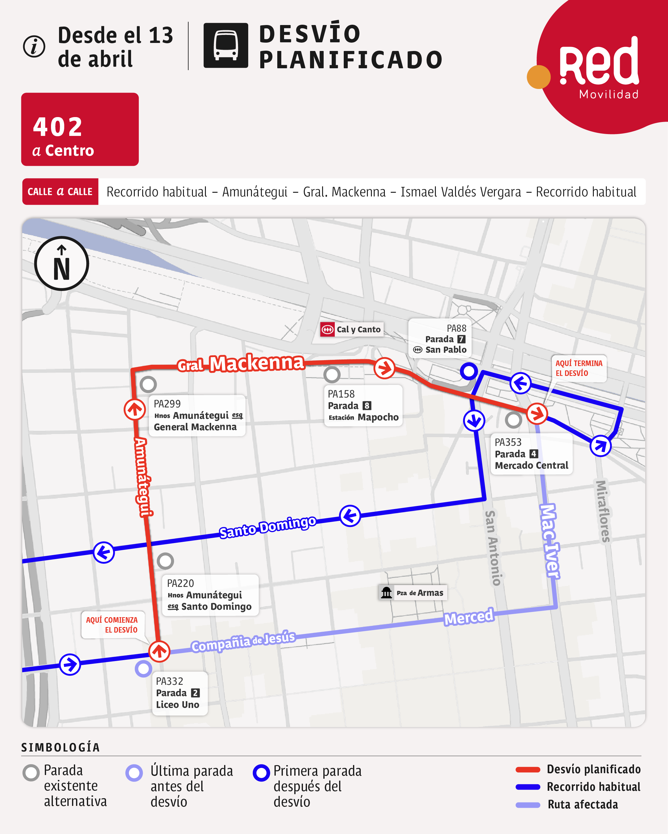 | 13 Abr 2026 - Hasta que terminen las obras | Varios | En ambos sentidos | Santiago |
