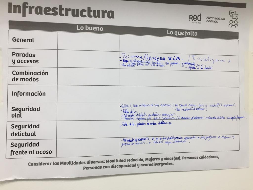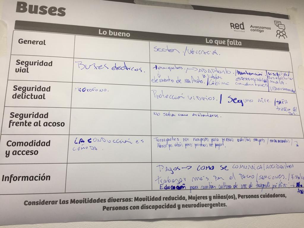 Con la participación de personas representantes de distintas empresas operadoras del sistema de transporte, entre ellas, Vule, Subus, Metbus, Redbus, STP, Metropol y Voy, algunos de los temas tratados se enfocaron en la necesidad de educación vial con respecto al uso del transporte, identificar ciertos aspectos de los buses que necesitan reformulación como los torniquetes y el bloqueo de puertas, además de la localización de paradas y algunas barreras a las cuales se enfrentan (mal estado de las calles, mantención de arbolado público, entre otros).