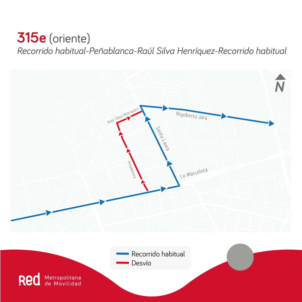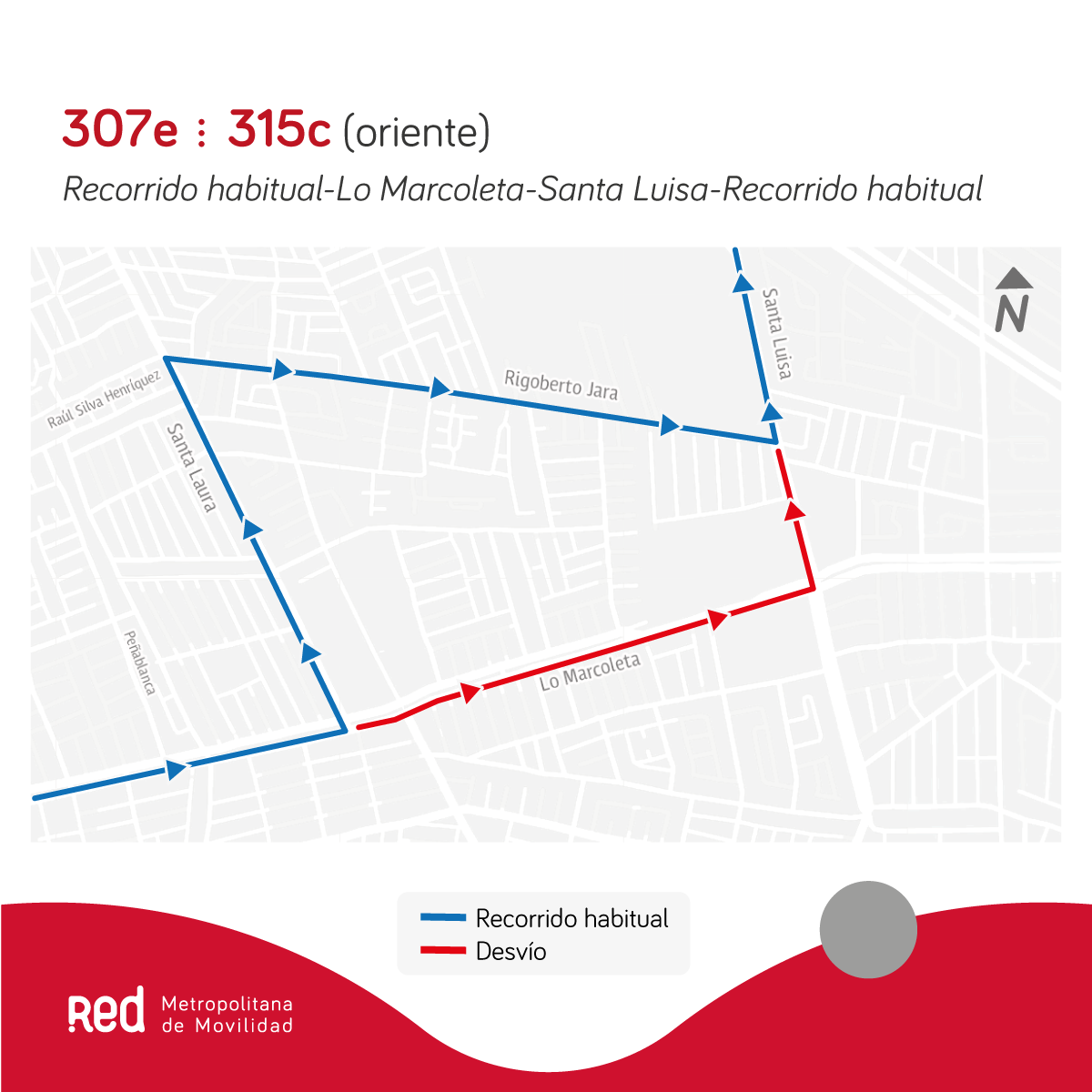 bus Recorridos 307e y 315c Hacia el oriente: recorrido habitual – Lo Marcoleta – Santa Luisa – recorrido habitual