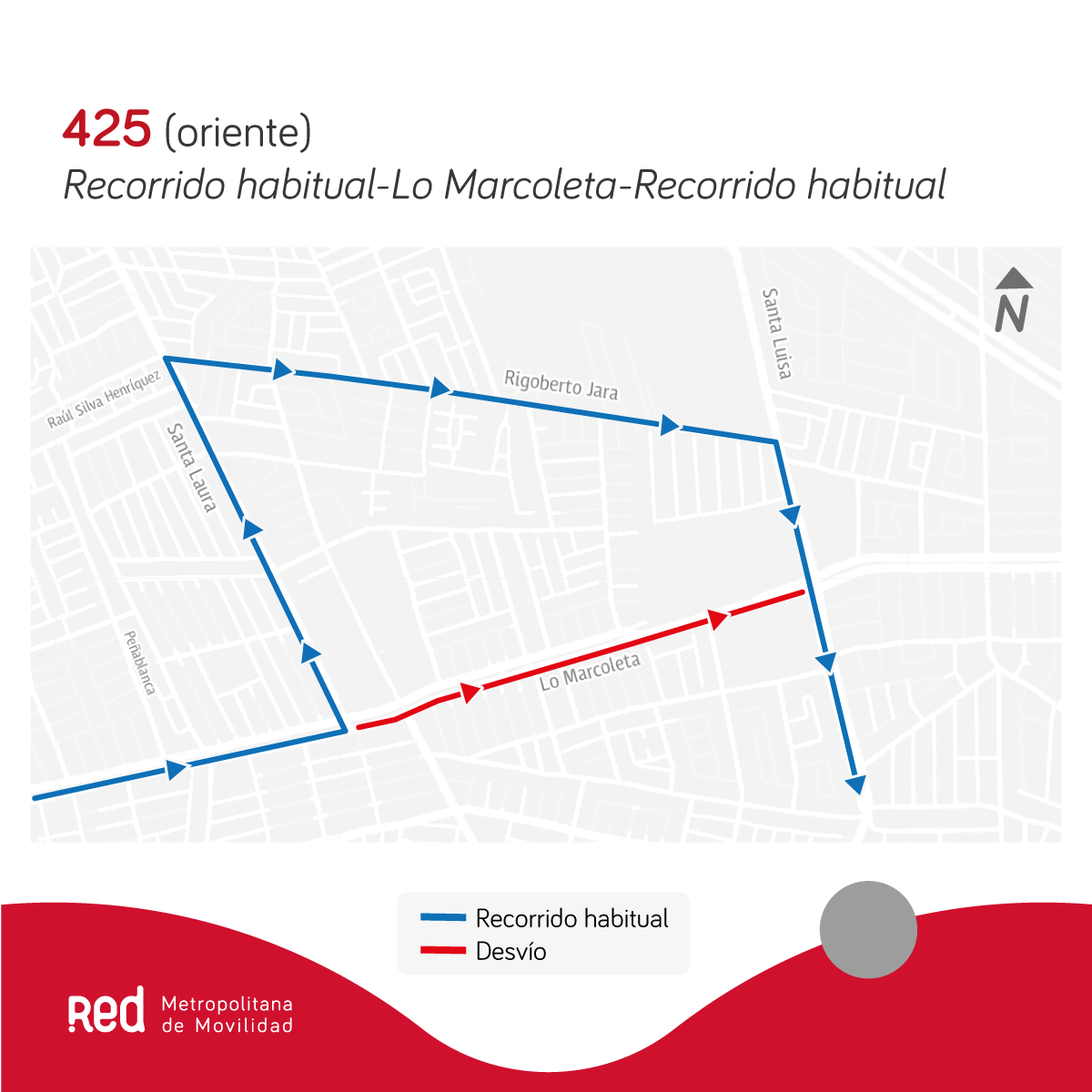 bus Recorrido 425 Hacia el oriente: recorrido habitual – Lo Marcoleta – recorrido habitual