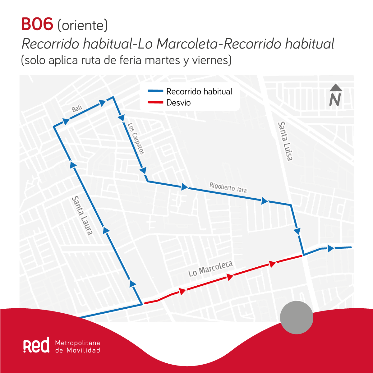 bus Recorrido B06 Hacia el oriente: recorrido habitual – Lo Marcolera – recorrido habitual