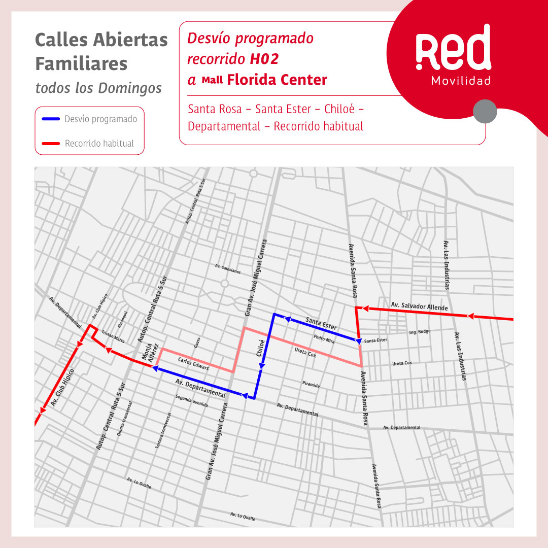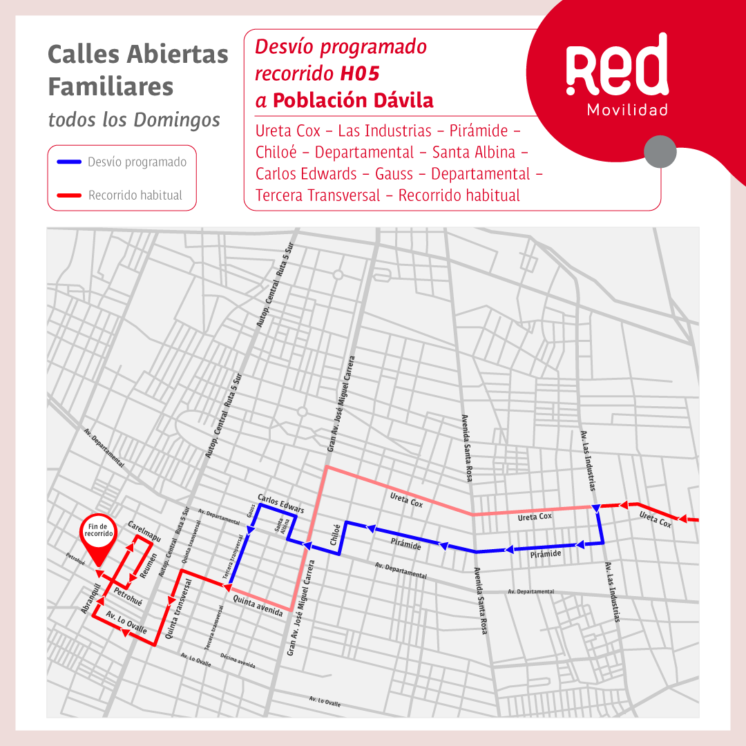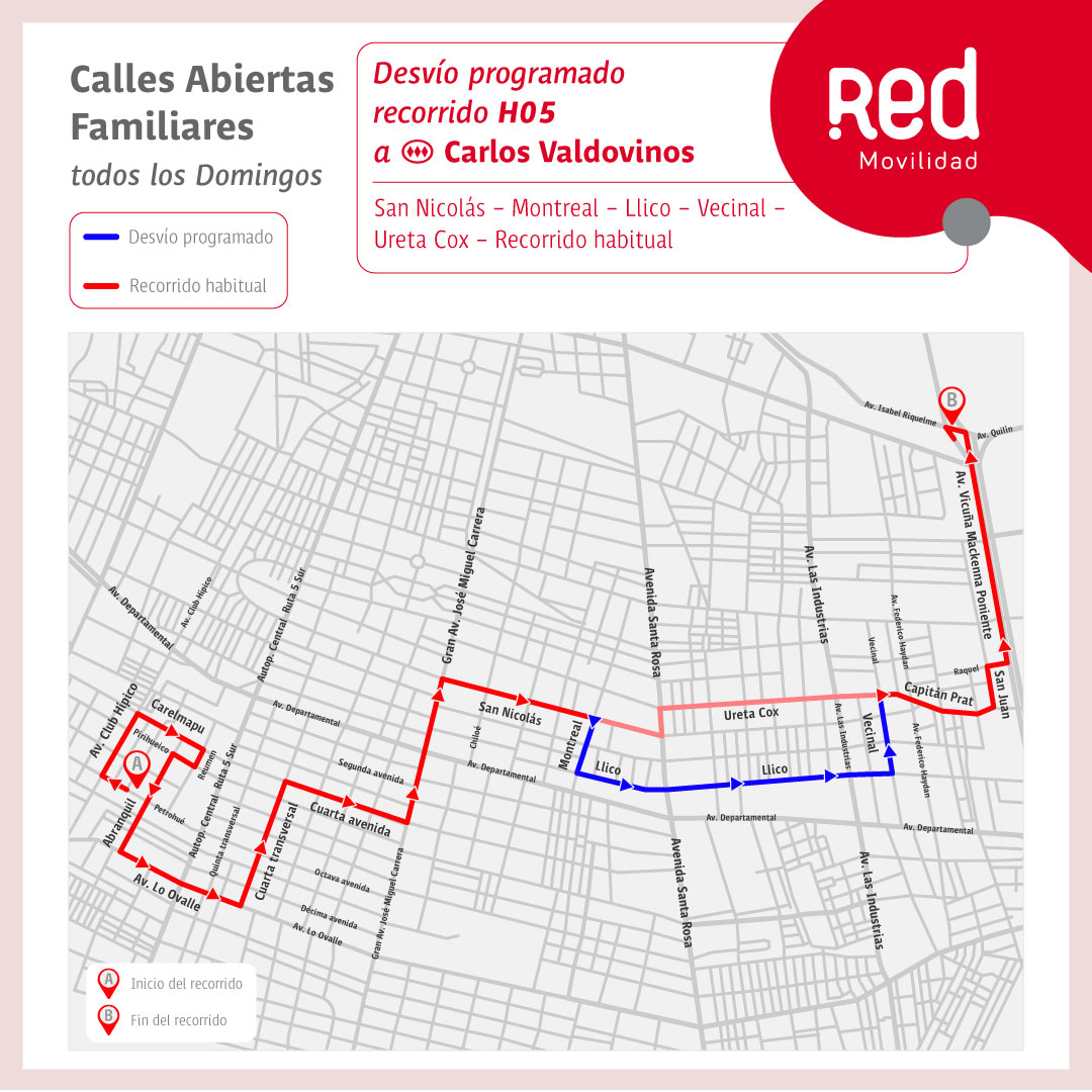 bus Paradas provisorias del recorrido H05 con dirección hacia (M) Carlos Valdovinos